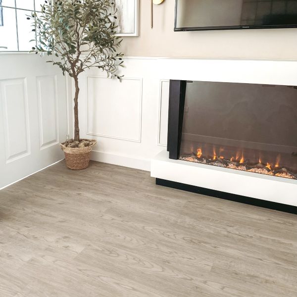 - Waterproof rigid core vinyl flooring ideal for any room in the house, including bathrooms, kitchens, and basements.