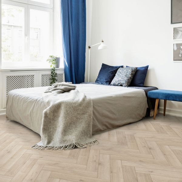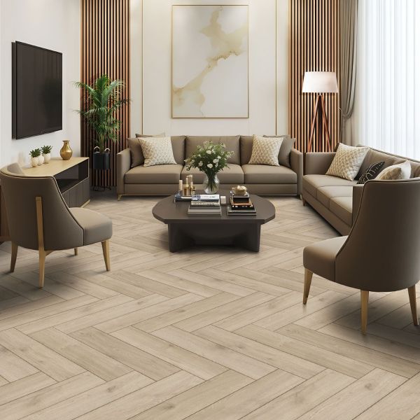 El piso laminado en espiga Latte de Golden Select® ofrece una elegancia extraordinaria gracias a su suave tono beige y a un veteado de aspecto increíblemente natural. Este clásico diseño en espiga añade elegancia atemporal y un aspecto refinado y sofisticado, creando su propio estilo en toda habitación. Este tono brinda una sensación fresca y de amplitud a todo espacio, una tonalidad suave que no impone, pero que cuenta con personalidad propia. Este balance perfecto logra que combine con todo tipo de diseños, desde espacios con piezas llamativas hasta áreas minimalistas. Este suelo será ideal incluso si usted cambia su estilo constantemente.